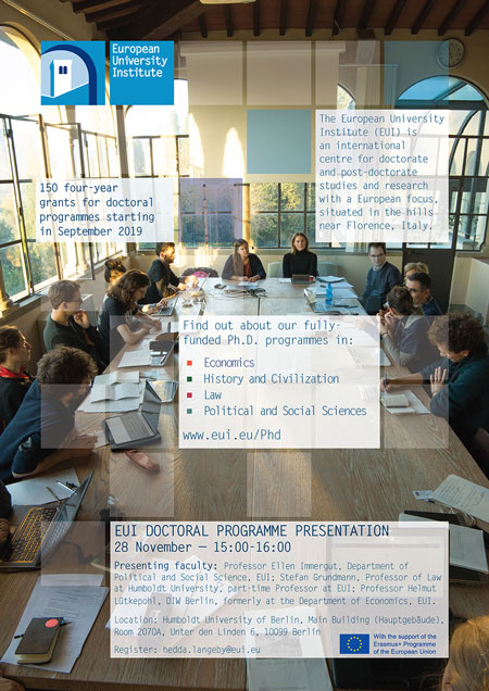 Humboldt-Universität zu Berlin | Institut für Sozialwissenschaften | TEST | Bilder | Prof Immergut to speak about Ph.D Opportunities at EUI Prof Immergut to speak about Ph.D Opportunities at EUI PhD-presentation-Humboldt-Berlin-TER-2_webNEU1.jpg image/jpeg Typ image/jpeg Dimension Abmessungen 450x636 Size Dateigröße 98.6 KB Herunterladen Bild in voller Größe anzeigen…